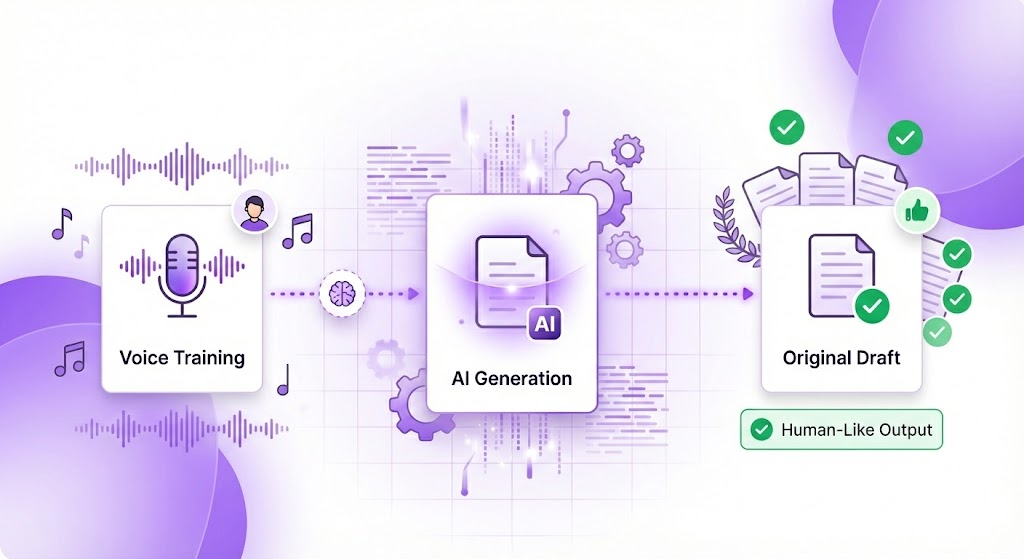 Train AI to write in your voice and generate natural-sounding, original drafts in a click—without leaving the platform. Whether it’s a unique author’s style, a specific genre, or your brand’s voice, UmanWrite helps you create content that captures the style you’re aiming for—clearly and consistently.